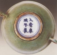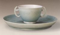 说 明: 这套杯碟造型隽秀,釉色淡雅,图案也与康熙时大多数制品的风格不同.