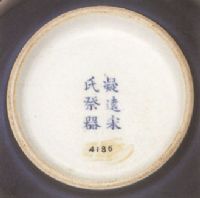 说 明: 蓝釉又叫"霁蓝",是一种含钴量百分之二左右的高温釉.外壁满施蓝釉,釉面滋润,釉色鲜丽.