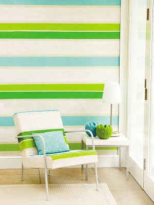 即使是秋冬的色彩流行趋势,也并不意味着杜绝一切鲜亮的涂装效果,因此,亮丽的条纹便成了今年秋冬涂料重点打造的另一种色彩效果,大胆地用各种对比色、相近色在墙面上涂画出条纹的效果,看似简单却异常抢眼。不同于春夏的浓烈,今年秋冬的条纹色彩相对柔和,有点像秋天大自然(企业博客|视频|专题)的颜色,像苹果般的绿色、粉色等颜色组合成各种柔和的条纹效果,色彩变化既丰富,又给人带来一种宁静的感觉。