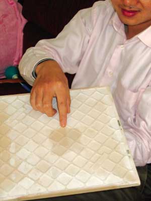 很明显,何铁柱家的瓷砖是属于上面第二种情况。为进一步检查,何铁柱拿出了一块和厨房所贴瓷砖同品牌、同规格、同批号的砖,结果被查出多个问题。背面网格凹度不一,做工粗糙;仅凭手感就能觉出瓷砖表面中间高,两边低,瓷砖釉面层厚度也不一致;将少量茶水倒在瓷砖背面上,茶水很快渗透,且背面留下的水渍颜色深浅不一,说明瓷砖密度较低且不均匀。另外,除了“MADE IN CHINA”几个英文字母外,瓷砖背面没有任何标志,而正规品牌瓷砖背面都有企业标志,说明这是一个杂牌瓷砖(何铁柱已不记得瓷砖品牌)。