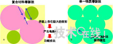 基于复合材料的零膨胀材料(左)和基于单一物质的零膨胀材料(右)的模式图