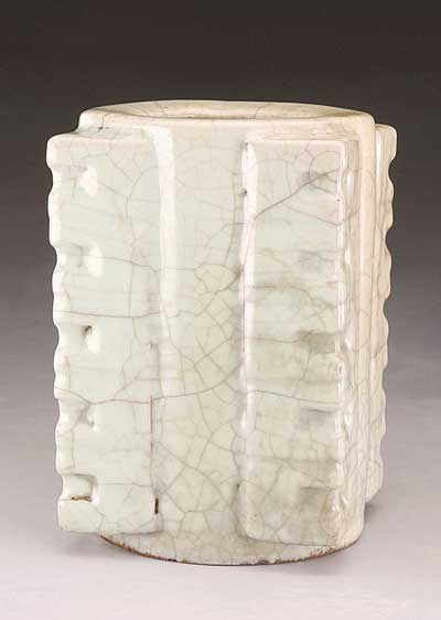 “这件南宋官窑瓷器是只有在博物馆中才能一窥的稀世珍宝,目前全世界类似的藏品仅有3件。”据中国嘉德负责人介绍,此次上拍的这件琮式瓶,外壁自下而上分为5节,方形,直腹,圈足,造型端庄。南宋官窑青瓷,主要表现的不在于它的装饰,而在它本身如玉泉般的、庄重的、典雅的、神秘的自然美。