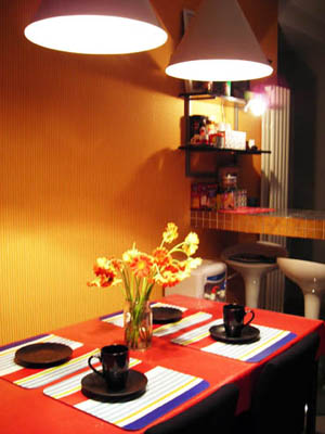 06年秋末,我买下了属于自己图行天下的房子,没有请任何设计师,没有画一张图纸,也从来就没有装修过房子的经验,但是我还是充满好奇,满怀信心的开始了偶地新窝大改造.我没有想过要给偶地窝窝定一个什么样的模式,只是觉得舒服,自己喜欢就好,也许是喜欢的风格太多了,所以装出来以后,额也不知道这叫什么风格啦,呵呵~从餐厅开始吧~偶地窝窝是开放式的客厅加餐厅,我就这么胡乱摆了~可怜地扶朗一回来就低头了。