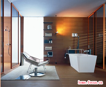 浴室被转换为真正生活空间不是奢华的幻想,一些细节的处理能很好的表达浴室与生活间的关系。比如,通过滑动的玻璃门,将会很难区分浴室到卧室的转变。作为一个设计师和建筑师,Antonio Citterio安东尼奥·奇特里奥把空间和产品以一种完美的方式结合在一起。