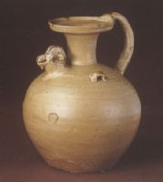 说 明: 通体施青釉.造型新颖.此器在青釉上装饰褐色斑点,增加了壶的魅力.