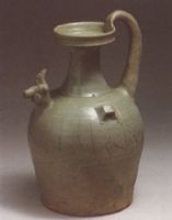说 明: 南朝.胎呈灰色,施青绿色釉.经东晋至南朝,其原来完全属于装饰性的实心鸡首,已演变成与器体相通之流,器身修长,口颈加高,造型更加适合实用.