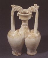 说 明: 胎质灰白,全身施微泛黄色的白釉.形制新颖美观,为隋代典型器物.