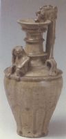 说 明: 胎质坚硬,呈灰色.釉较厚,玻璃质感很强.装饰题材新颖,顽猴栩栩如生,实属北方青瓷佳品.
