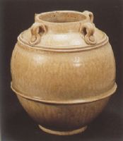 说 明: 胎色灰白.釉色青中闪黄,施釉不到底,有流釉现象,釉厚处呈玻璃状.整个器形浑厚饱满.