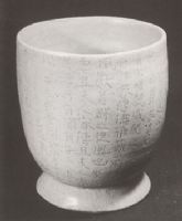 说 明: 胎质细腻,釉色青黄滋润,局部呈蓝色.烧瓷作墓志铭为唐代越窑所常见,形式多样.这是其中的代表作.