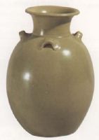 说 明: 胎质浅灰,细腻致密.釉色青中泛黄,釉层匀净,如冰似玉.造型美观,为越窑青瓷的优秀作品.