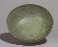 说 明: 五代.胎呈浅灰,胎质细腻,釉色青绿,晶莹光泽,呈半透明状,胎釉结合紧密宛如美玉.划刻纹饰简练有力,十分生动.