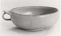 说 明: 南宋.施粉青釉.釉面有纹片.紫口铁足.器形轻盈俏丽,釉色晶莹透澈.