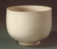 说 明: 薄胎色白,质坚细.釉色白中闪黄.芒口毛足.釉面有稀疏麻坑.刻花纹饰生动,笔法洗练.