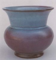说 明: 通体施釉绚丽灿烂,器里壁为月白色,底有五孔.器身有"蚯蚓走泥纹",是钧窑瓷器的重要特征之一.