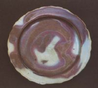 说 明: 胎质细腻,造型古朴.通体施天青色釉,釉质浑厚,釉面有开片.盘内有大片窑变紫红斑,似怒放的玫瑰,红、紫、青色自然交融,相映成趣,属宋代钧瓷之佳品.