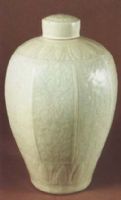 说 明: 灰白胎,釉白而泛青色.纹饰清晰.有盖的宋代影青梅瓶,尚不多见.
