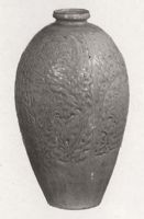 说 明: 胎白,淡青釉.腹部满饰模印缠枝莲花纹.据考此瓶是北宋景祐五年(公元1038年)前烧制的.