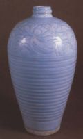 说 明: 灰白色胎,满身施翠青色釉,莹润如玉.纹饰刀法熟练.