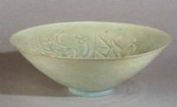 说 明: 胎薄质润,釉色青中透白.纹饰刀法犀利流畅,生动活泼.