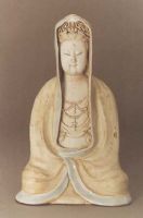 说 明: 胎质洁白细腻.容貌秀美、神情慈祥睿智.塑像构思缜密,用粗线条捏塑形体及衣纹;面部及前胸则精雕细琢.