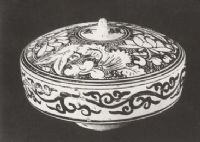 说 明: 胎白,白釉泛黄.画笔纯熟简练.造型讲究实用,花纹图案舒展,为磁州窑少见的产品.