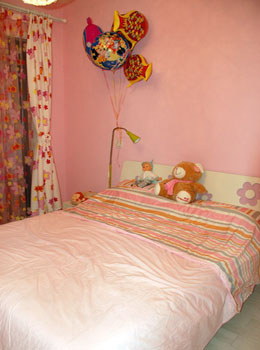 这里一看就是小公主的卧室,粉色是最浪漫的色彩,非常适合用在儿童房里。带有颜色花朵的窗帘与窗纱使空间感觉更具色彩感。(儿童房里色彩不宜过过,简单清新的色彩是最适合儿童房了)。
