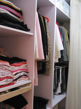 现在的女孩衣服一定少不了,当你打开衣柜里面琳琅满目的衣服会使人看得眼花缭乱。本套样板房中的衣柜和书柜结构模式差不多都采用了空间可自由调动,这样的设计其实方便衣服的空间储存。八十年后的女孩子不太爱打理这堆的满满的衣服,但她们喜欢漂亮、喜欢干净,想穿某件衣服,好不容易找到了却皱巴巴的急急忙忙再找熨斗烫,这就是八十后的作风,所以这样的衣柜储蓄空间,对于八十后的女孩是非常实用的。