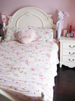 八十年代后的公主们都喜欢白色的家具、田园的风格、可爱的装饰,她们总是希望一切可爱时尚的元素伴随着她们生活,卧室当然也不例外了,看卧室里有不少的可爱宝贝呢?它们伴随着公主们度过了无数个快乐时光。床头旁边的柜子对于公主们来说也是必不可少的,公主们的宝贝不少呢,看柜子上面满满的都是,每样宝贝看起来都很精致,还有展示不了的就可以放在里面很方便哦。