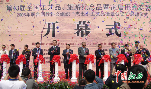 4月10日,第43届全国工艺品、旅游纪念品暨家居用品交易会在南昌举办。图为交易会开幕式现场。