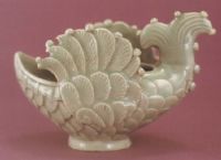 说 明: 瓷胎坚韧洁白.施青釉,晶莹透澈.飞鱼形,披鳞展翼,意态生动.