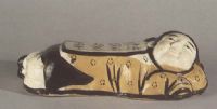 图片名称: 扒村窑白地黑彩诗句卧婴枕