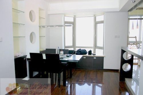 此处房产的北阳台条件相当好,通风,半落地的大窗,为设计师造景准备了条件。对于餐厅和厨房的处理是打通与厨房的墙壁,做一个吧台,隔开两个空间,同时预留走道,将原先在外面走道的厨房门移到餐厅中来。厨房变为半开放式,使餐厅和厨房成为一个有机的组成部分。也在视觉上,扩展了视野,同时厨房又借用了北阳台大窗的自然光照明。