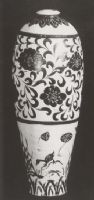 说 明: 胎厚质较粗,色浅灰.纹饰疏密适当,线条简练明快,充分表现民间匠师的艺术才能.是金代磁州窑的典型产品.