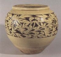 图片名称: 赤峰窑白釉剔花牡丹纹罐