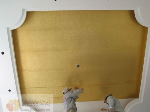 吊顶的顶部壁纸也是金黄色的,这样就能从上方衬托出客厅的辉煌华丽。本身金色会反射光线,加之金黄色的吊灯,更显得金碧辉煌。