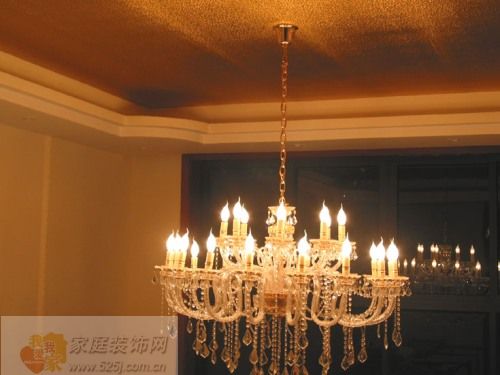 吊灯不再是那种数量少的蜡烛柱,而是火焰类型的灯光,这样就不会让客厅变得有如教堂一样了。而更多的显现出了温馨的气氛。