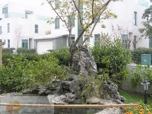 小花园水景中的玲珑石
