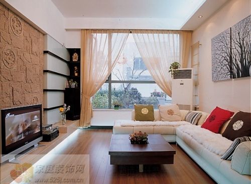 我在设计该个案前除了和业主做充分交流外,还对原有房型结构做了功能上的优化。这是一套三层的联体别墅,业主为颇有传统文化修养的儒商,因此设计风格定位自然为现代中式。一楼门厅过道原设计为两层挑高,这样一来既加大了矛盾(会显得过道、门厅过于狭窄),又不节能。我把过道和门厅上方挑空的空间搭建成为家庭厅,从而一举三得。门厅右侧原设计为装饰柱,我把它以具有功能意义的鞋柜衣帽柜取代之,并运用干竹杆帘营造出与下沉式客厅的半通透效果,而此干竹竿的运用一直延续到楼梯的栏杆,中国古代文人之:“宁可食无肉,不可居无竹”的理念~~。