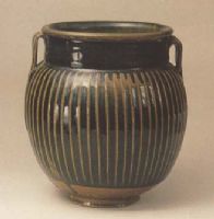 说 明: 胎质坚硬,呈灰白色.黑釉明亮,内有蓝色牛毛纹.白线纹装饰富有地方特点,为山东、河南一些地方瓷窑所产.