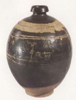 说 明: 此瓶器圆浑,特别是由下向上内敛的蘑菇形式小口,是北宋的制作风格.西夏瓷器制品,现存很少.