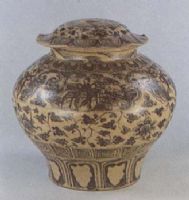 说 明: 胎灰,釉青白,开片纹,内外施釉.纹饰繁缛,层次清楚,用笔流畅,富有中国传统水墨画的效果.为云南地区元代青花器.