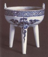 说 明: 器身施青白釉,绘青花纹饰.纹饰与器型紧密结合,舒展生动.