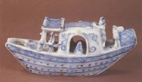 说 明: 青花颜色凝重鲜艳,有赭色斑.白釉莹润,白中闪青.陶瓷模型船较为罕见.