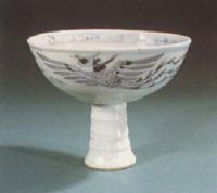 说 明: 釉色白中泛淡青色,凝重莹润,少有麻坑.青花颜色灰暗,有铁锈斑.笔法流畅,活泼自然.是元代青花瓷中少有的.