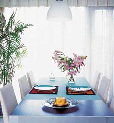 强调色彩柔和、协调,配饰大方稳重,以木质材料为主。设计上注重实用和舒适,摒弃过于夸大的雕琢性饰品。"雅致"两字则主要在软装饰上体现,如主人经常弹奏的古筝、一盏宫灯、一幅国画,放在适当的位子都能起到点睛效果。