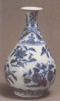 说 明: 造型秀丽,坯体轻巧,釉面光洁平滑,滋润肥厚,青花色泽清新明快,晕散有疵,纹饰排列疏朗得体,为永乐青花器中的佳作.