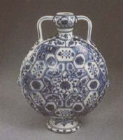 说 明: 胎质洁白细腻,釉色白中微泛青.扁瓶造型别致,纹饰新颖,布局严谨而又富于变化,均受到十三世纪西亚文化的影响,与当时中外文化交流有一定关系.