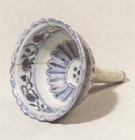 说 明: 器体由花口碗形的斗和一长管构成.胎质洁白,器身釉色白中泛青,漏斗的管部施乳白色釉,开大纹片.清新素雅,别具一格,是一件造型精巧实用的器皿.