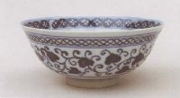 说 明: 胎薄质细,釉色白中闪青,釉薄光润且匀.内底花纹中的永乐年款,已模糊不清.造型秀丽,青花色泽浓艳,制作精致.曾为衍圣公府旧藏.
